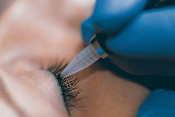 Hierbei werden kleine Punkte gesetzt. Sie vermitteln den Eindruck von mehr Fülle der Wimpern